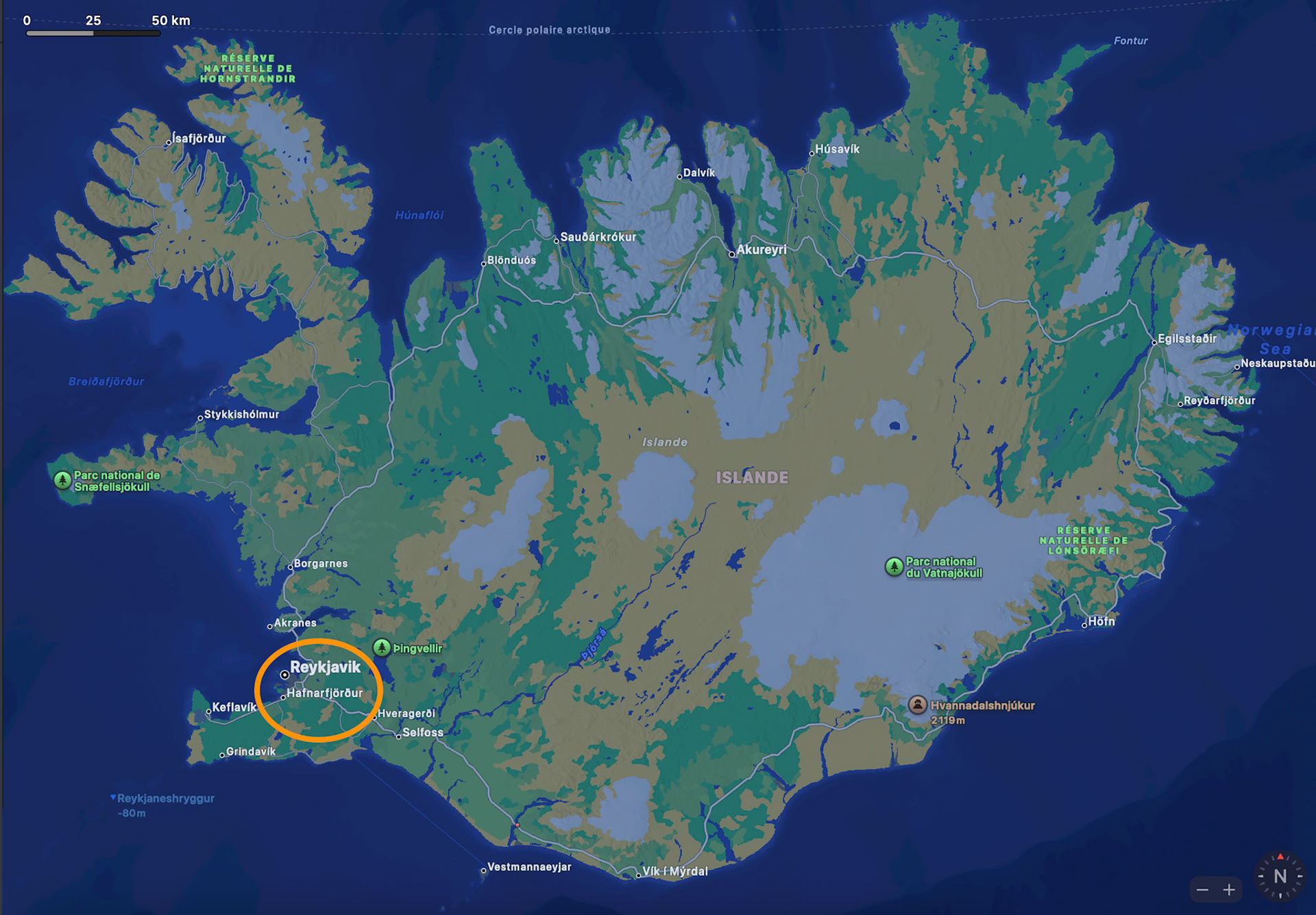 plan de route - Reykjavik